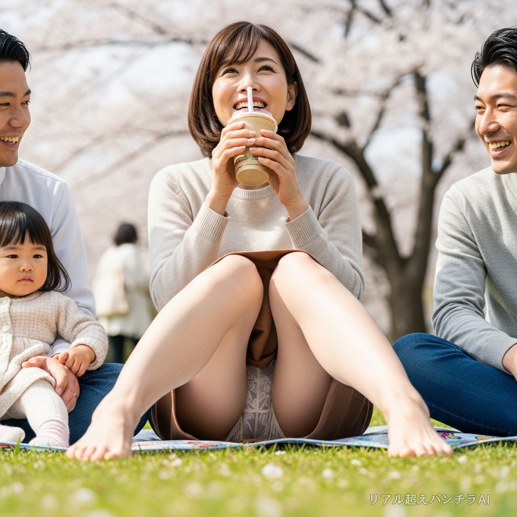 公園で複数の家族と一緒に花見を楽しむ美人奥さんが目に入った。