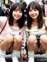 芝生の公園で、飼い犬を連れて訪れた美人2人のしゃがみパンチラのセット動画です。