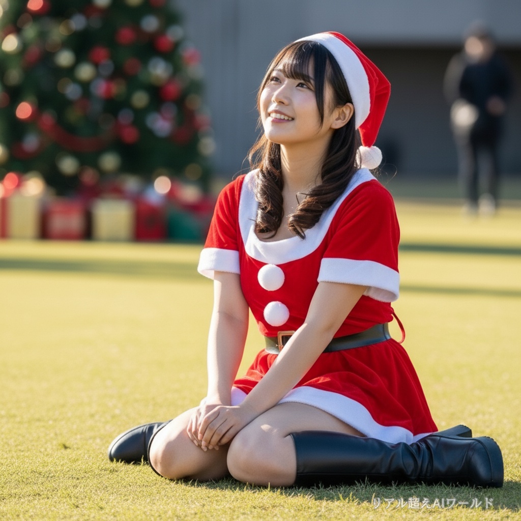 クリスマスにサンタ衣装を着た女の子が撮影中なようです。かなり短いミニスカートなので、最初はパンチラしないように気をつけて座っていた彼女ですが、段々と油断し始めてしまったのかカメラマンの誘導が上手いのか、体育座りで白い生パンを何度も見せてしまいます。