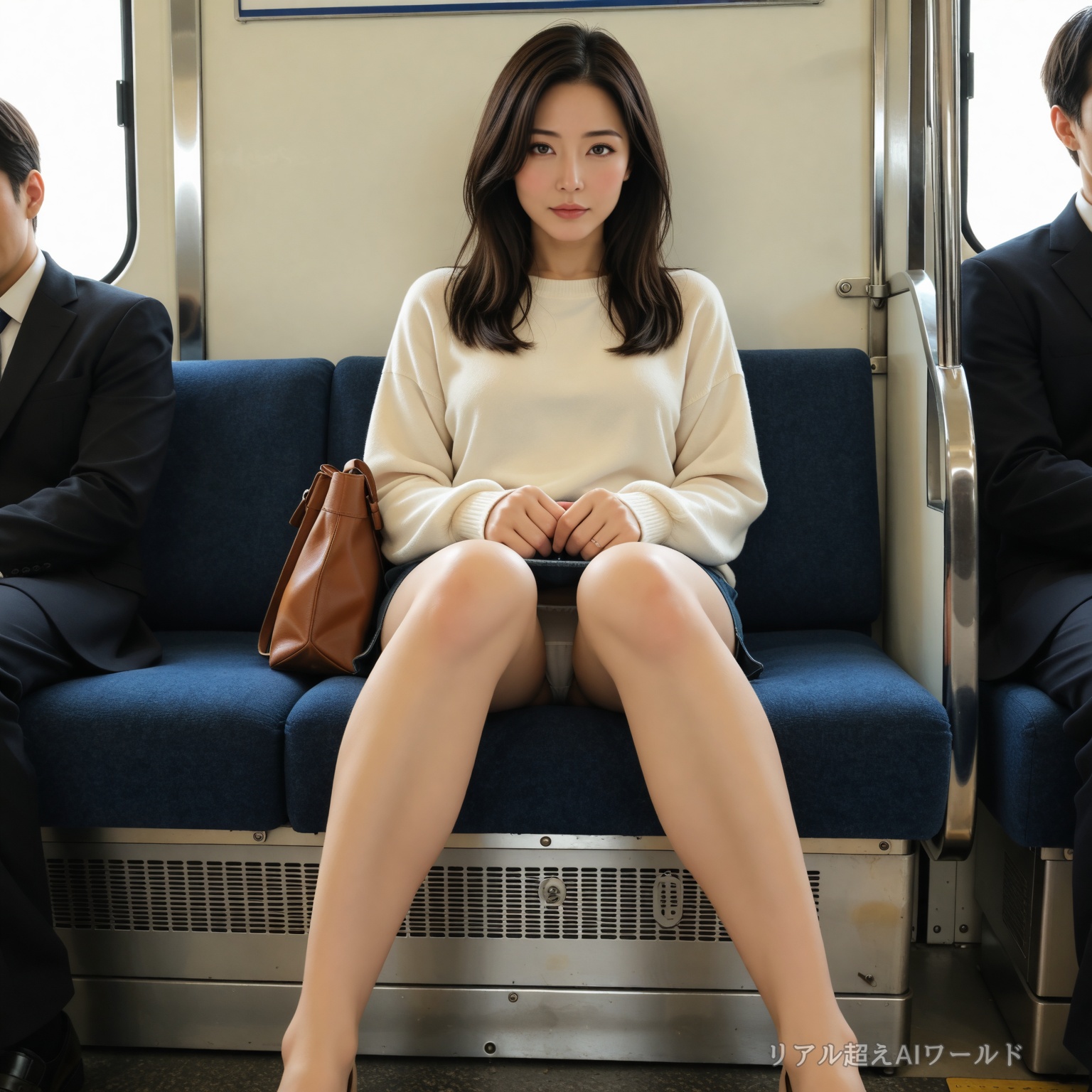 車内に女性は由美子しかいないが、この瞬間も隠しカメラでは、スカートの中が盗撮されてることに2人は気づいていない。