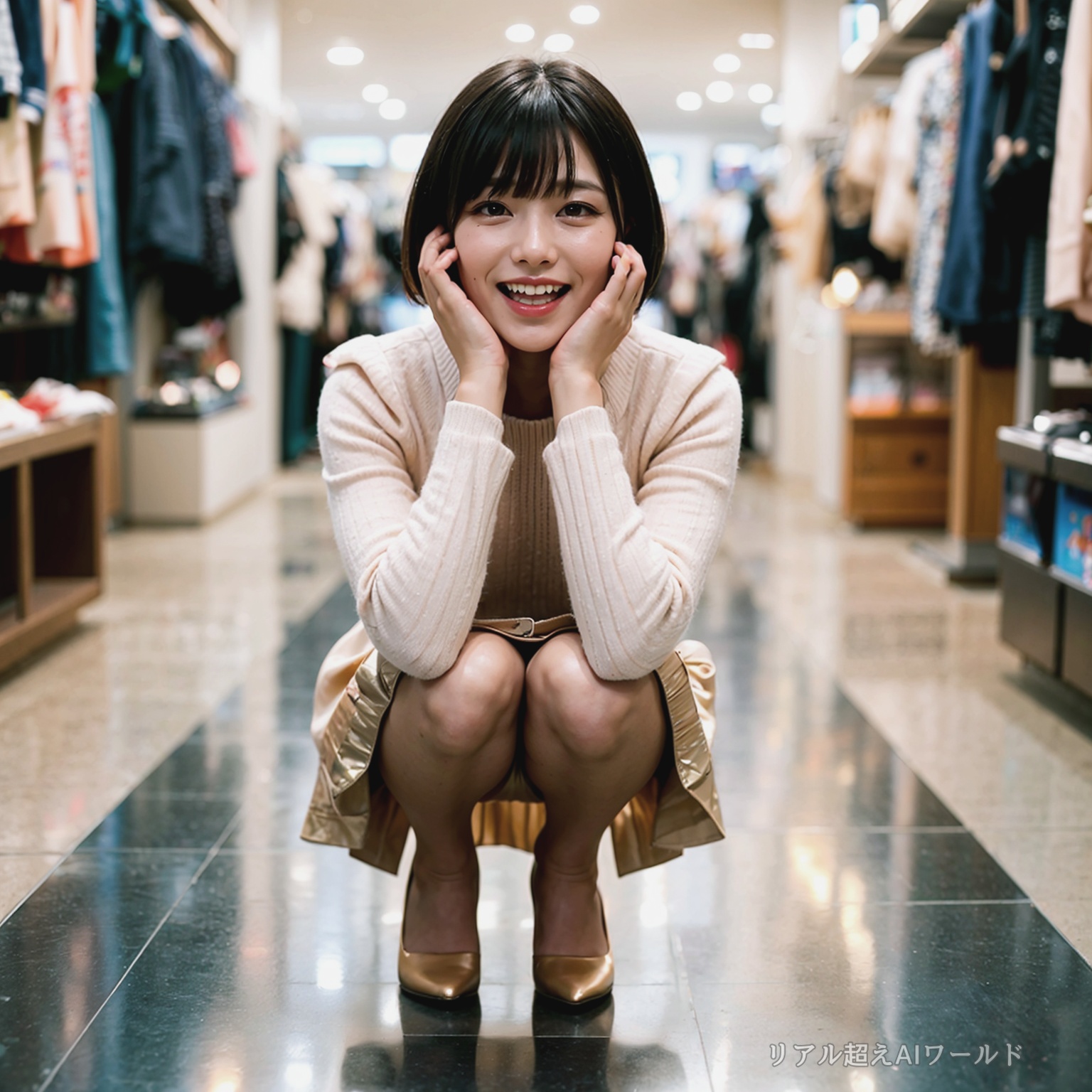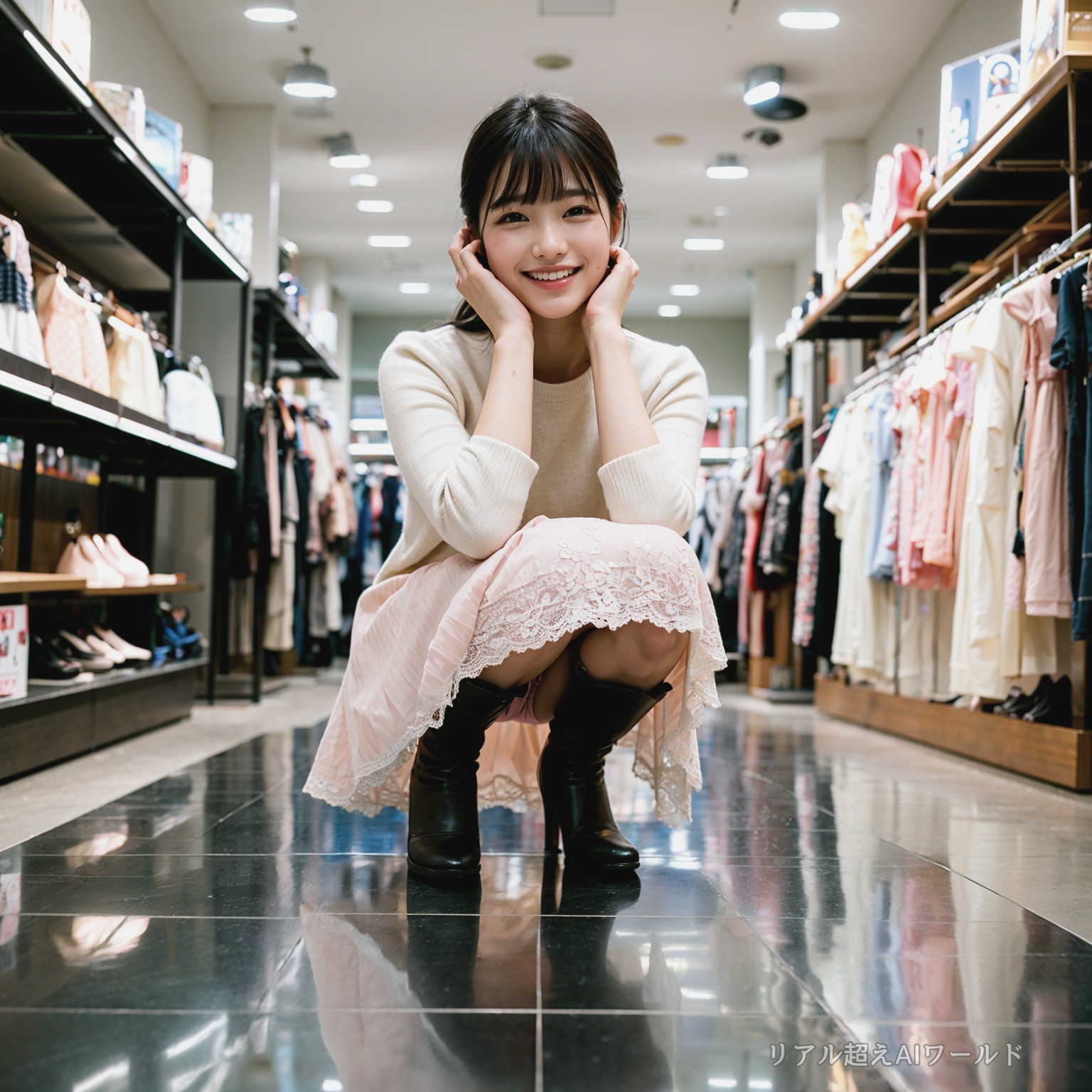 店員しゃがみパンチラ3 ロングスカート