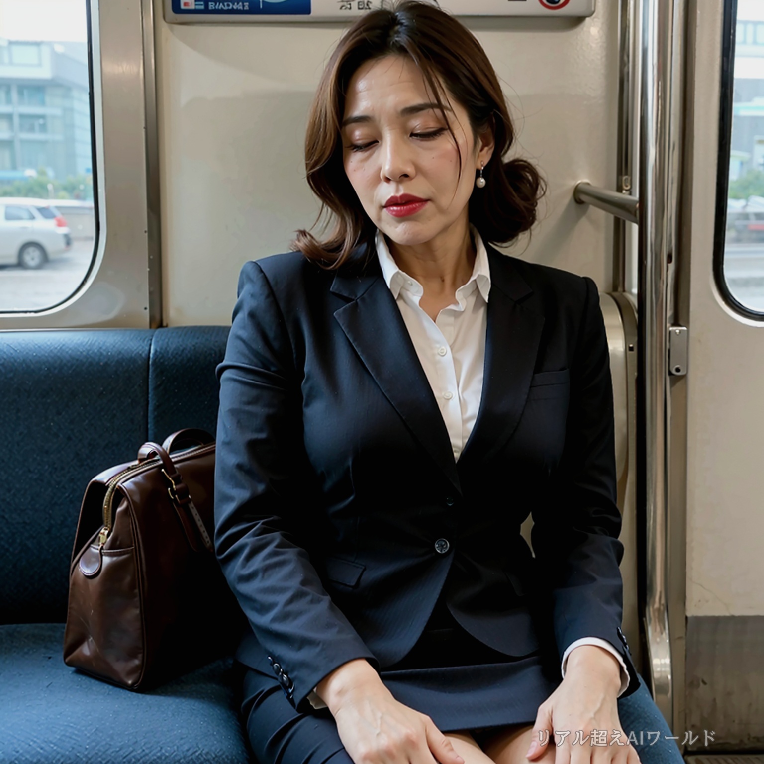 西園寺レオナ車内 【西園寺レオナ盗撮】車内8「座りパンチラ黒レザースカートYシャツ」植草まさし秘蔵映像