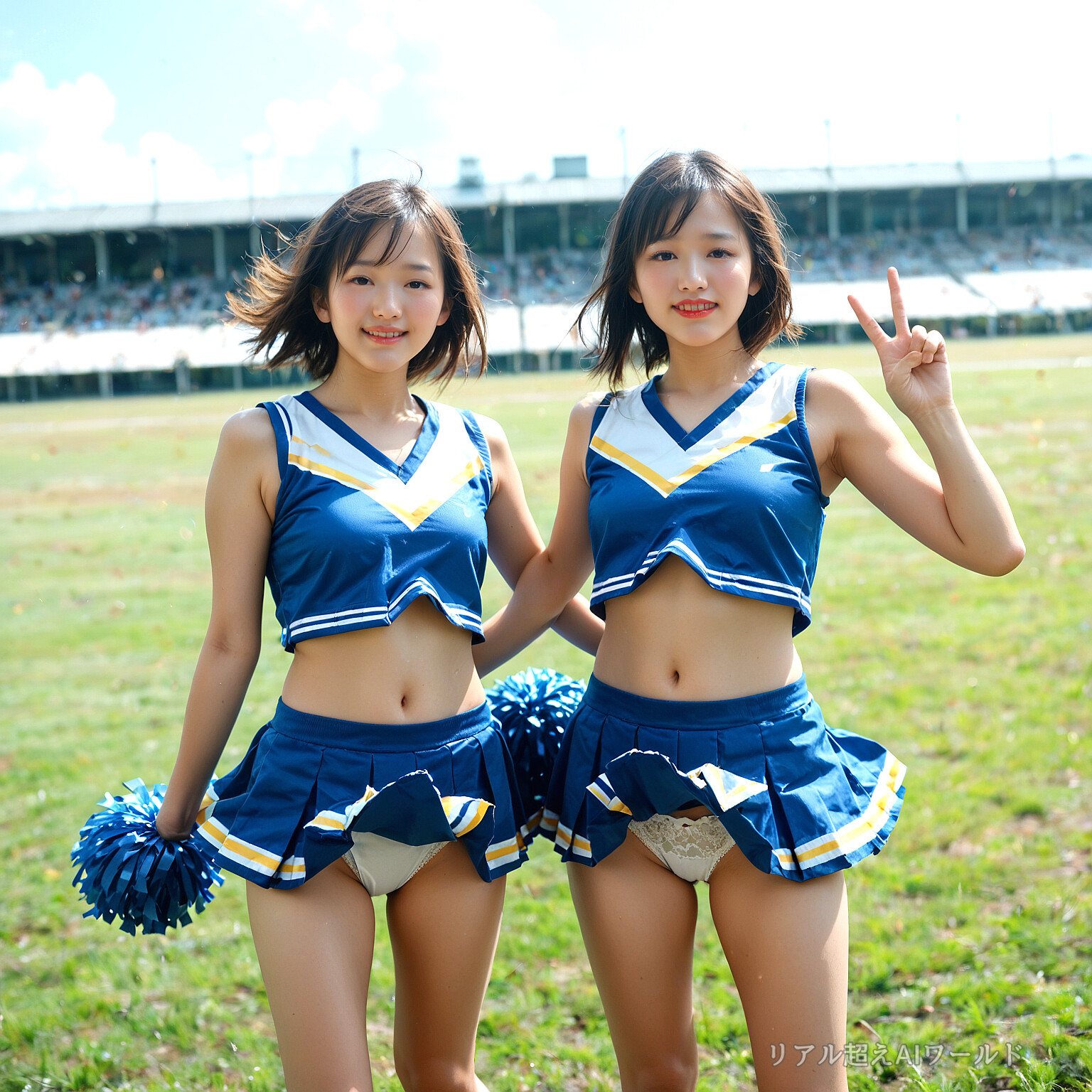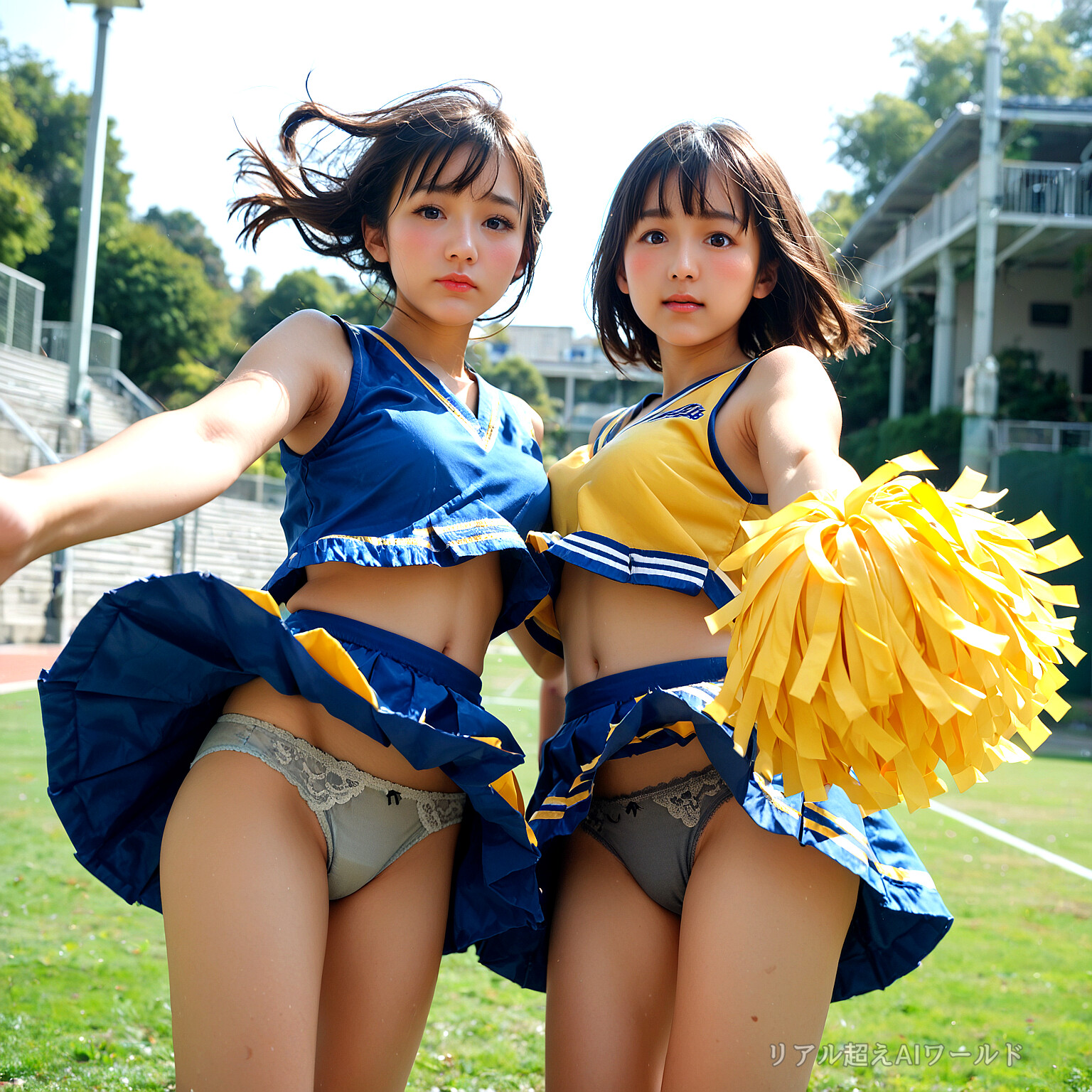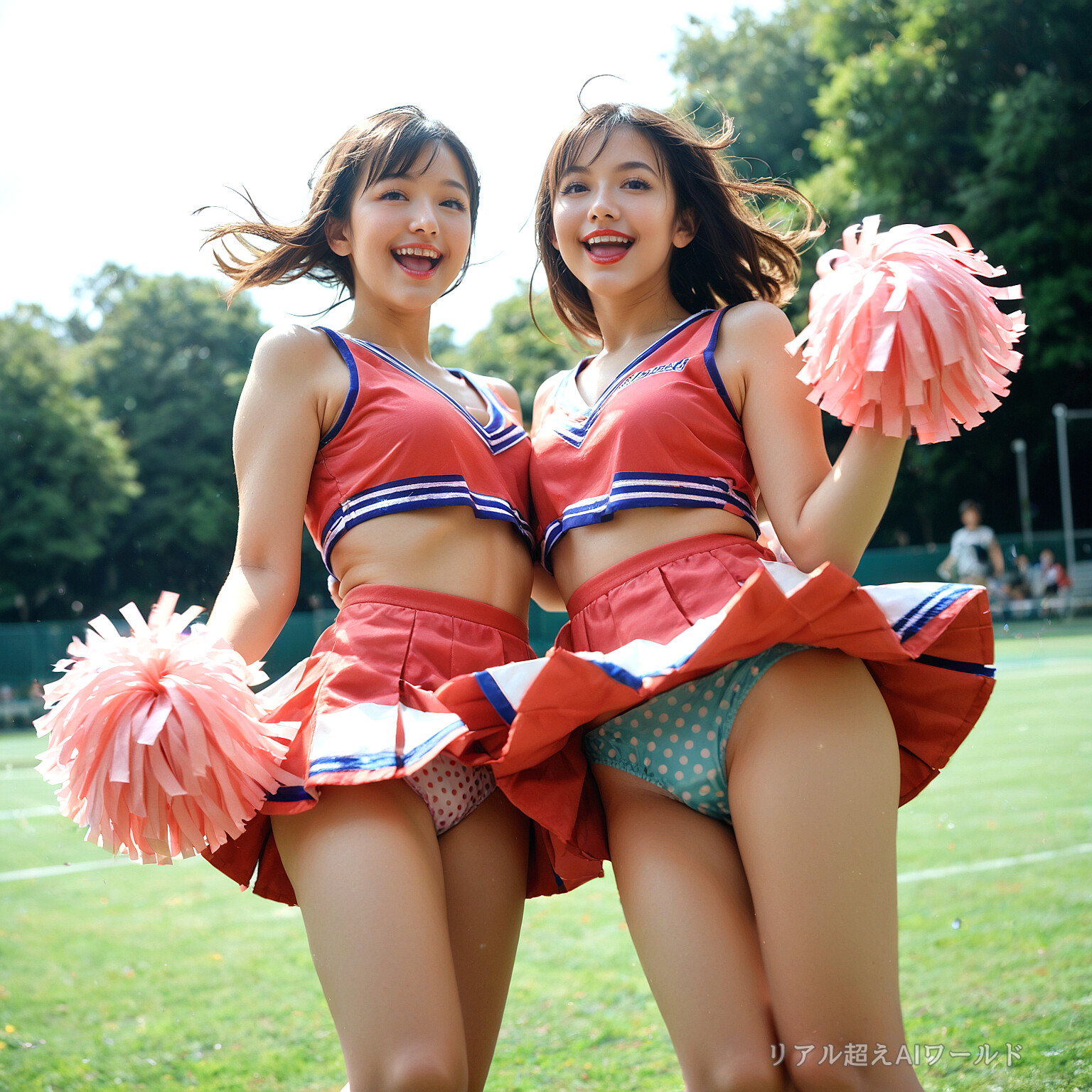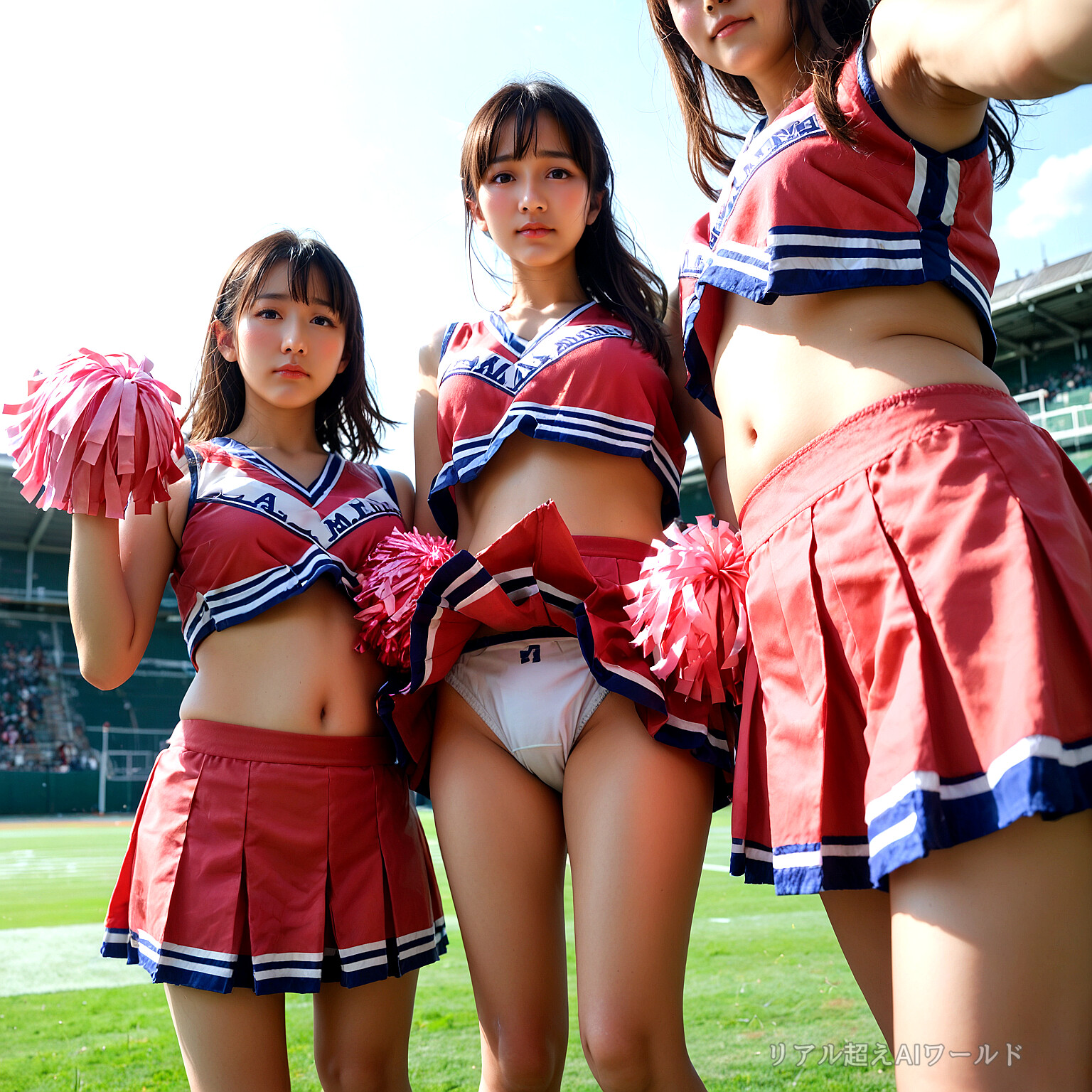 スカートがめくれて慌てて手で隠していたり、気づかずに笑顔のままだったりとシリーズや画像によって、様々なバリエーションがあります。